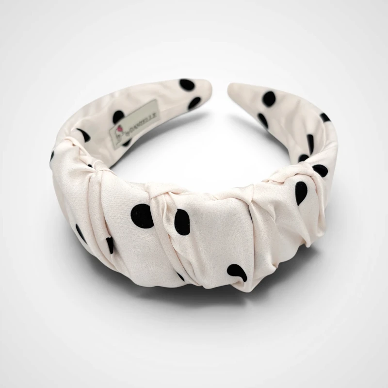 #opaska grochy #opaska do włosów damska #biała opaska w kropki #elegancka opaska do włosów #stylowa opaska retro #opaska pin up #opaska vintage grochy #marszczona opaska do włosów #opaska kremowa w grochy #modna opaska damska #opaska casual chic #dodatek do stylizacji #hairband polka dots