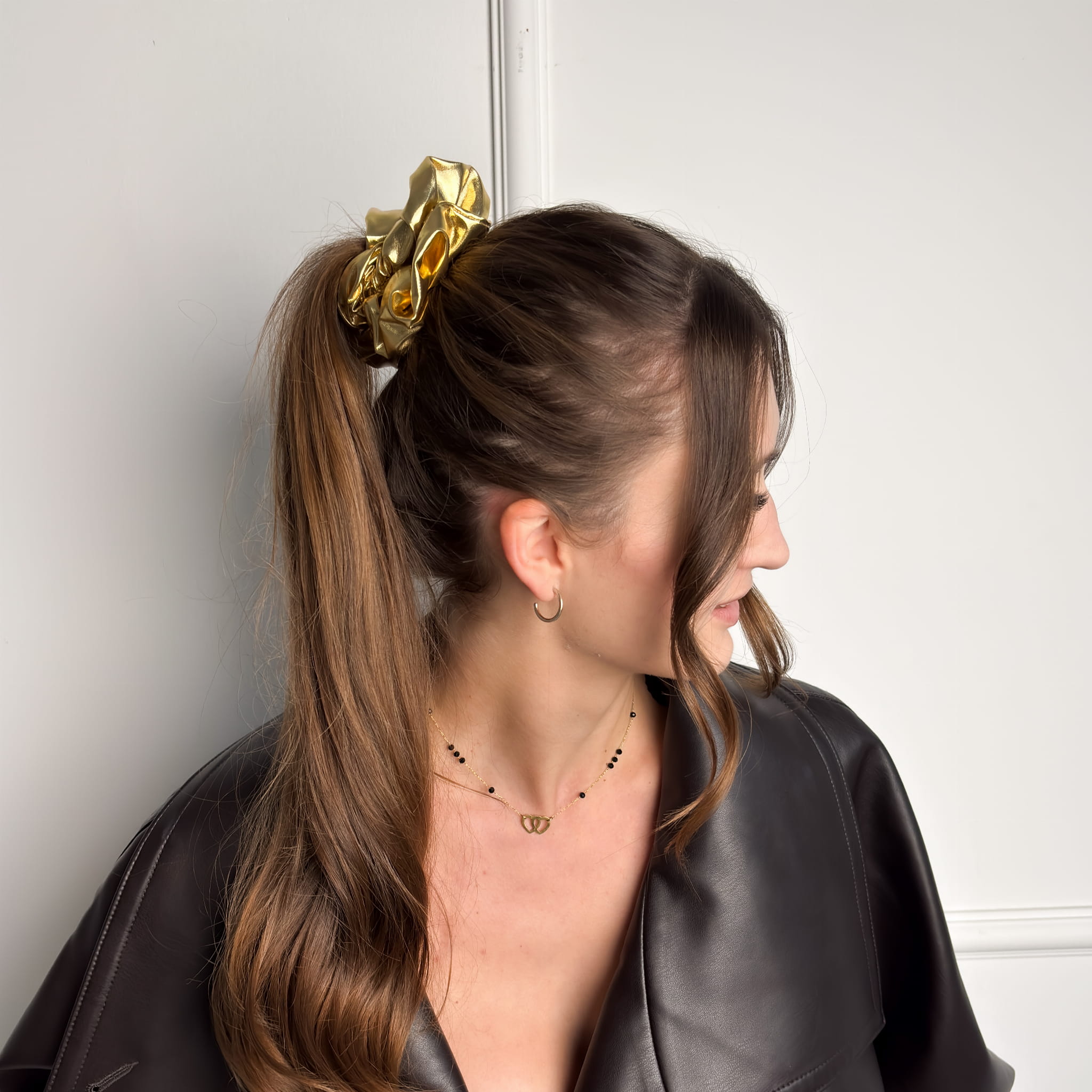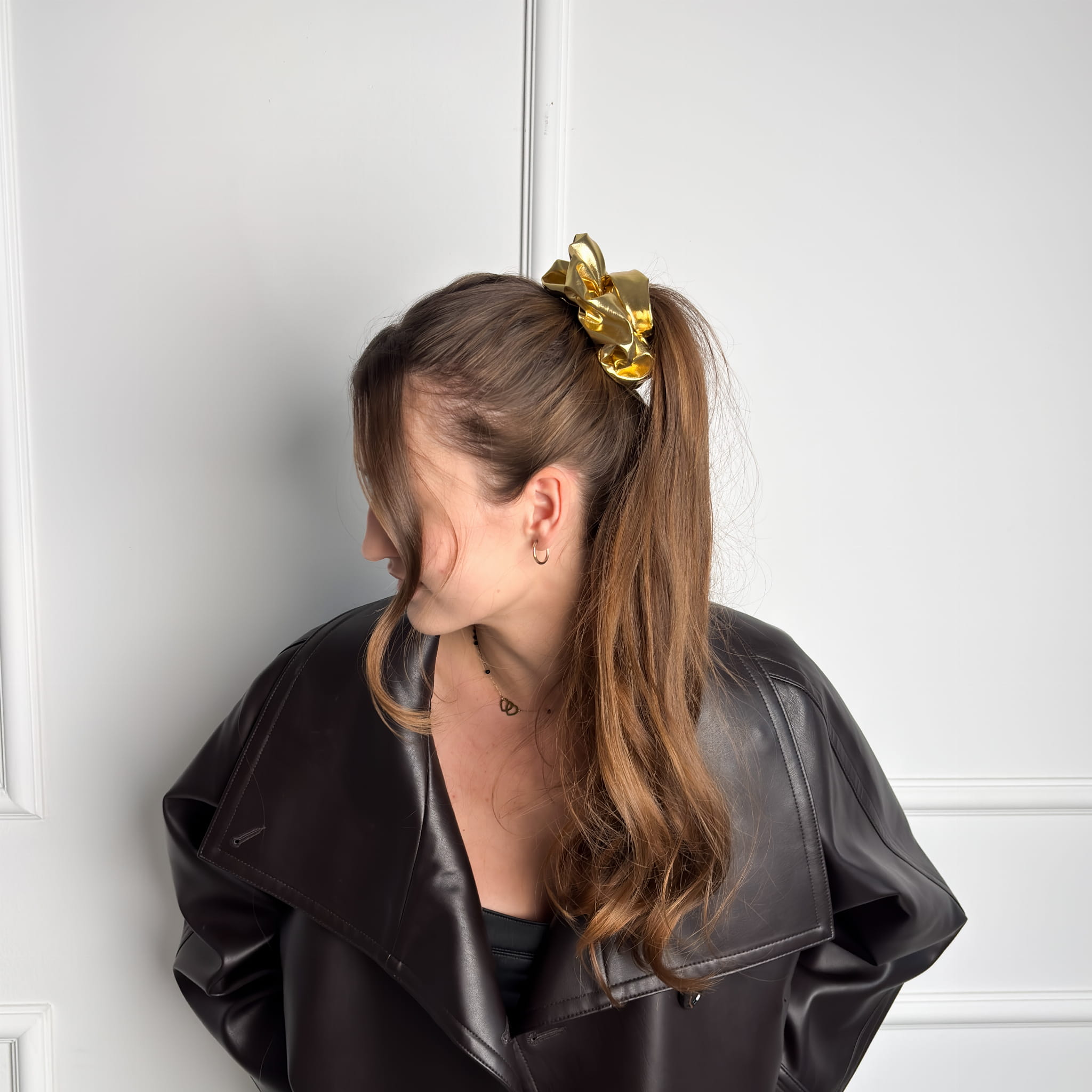 Scrunchie z kolekcji wieczorowej, stworzona z myślą o wyjątkowych okazjach. Delikatnie połyskujący materiał pięknie odbija światło, dodając fryzurze elegancji i efektu glamour. Puszysta, z dużą ilością materiału — idealna na sylwestra, imprezy, święta czy ważne wyjścia.