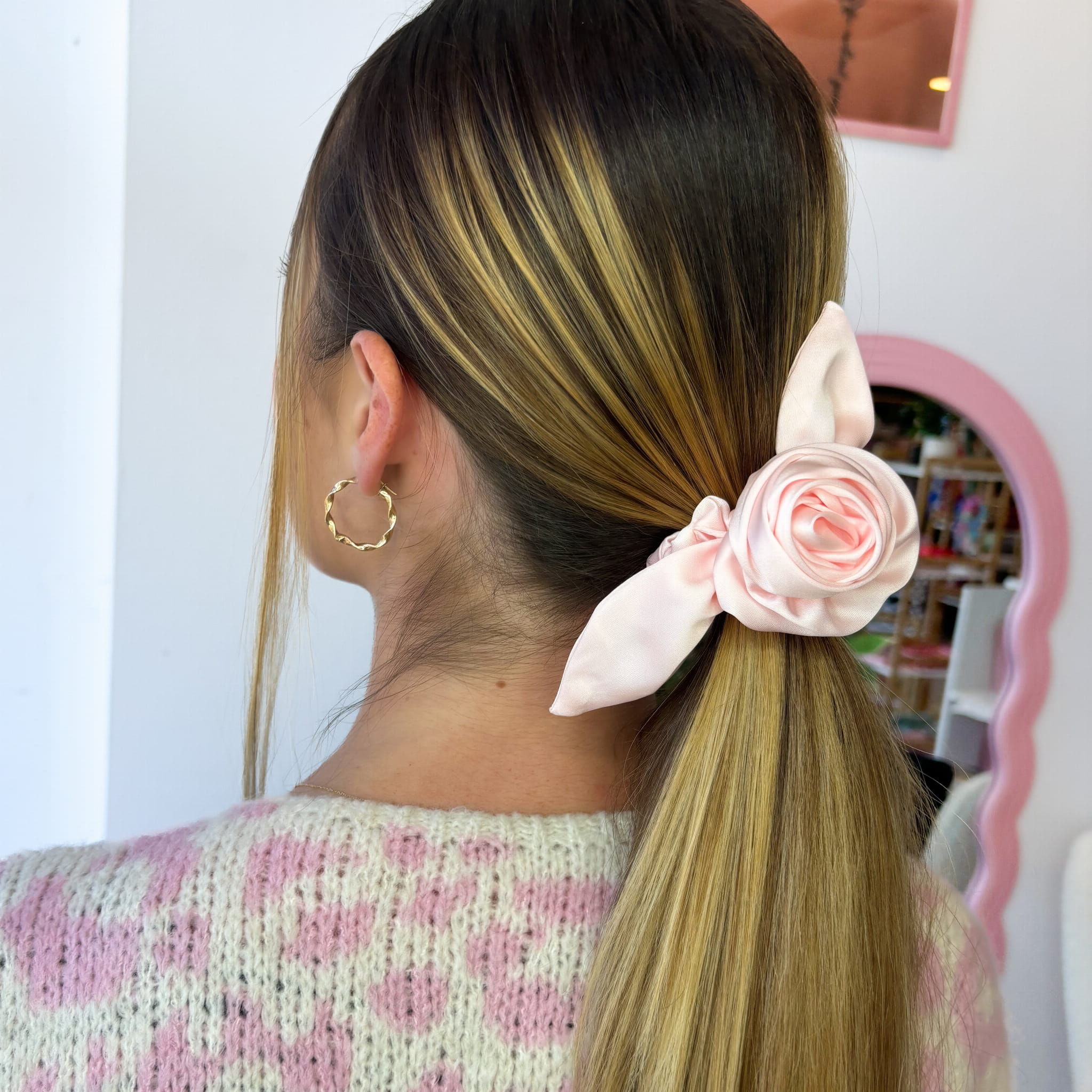 ❥ Możliwość noszenia na dwa sposoby: jako scrunchie z różyczką lub bez – wybierz, jak chcesz się prezentować