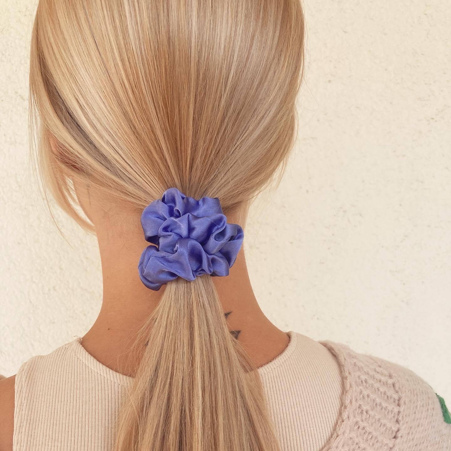 Gumka Very Peri, to scrunchie wykonana z naturalnego jedwabiu, najbardziej cenionej tkaniny na świecie. Jest wyjątkowo miękka i delikatna dla skóry głowy i włosów. Nie niszczy ich, nie łamie i nie zagina, nie powoduje elektryzowania się włosów. Pomaga stworzyć szykowną i kobiecą fryzurę. Jest idealnym dodatkiem do codziennych stylizacji i na specjalne okazje. Jedwabna gumka mini Very Peri jest piękna, praktyczna i bardzo dobrze trzyma włosy.