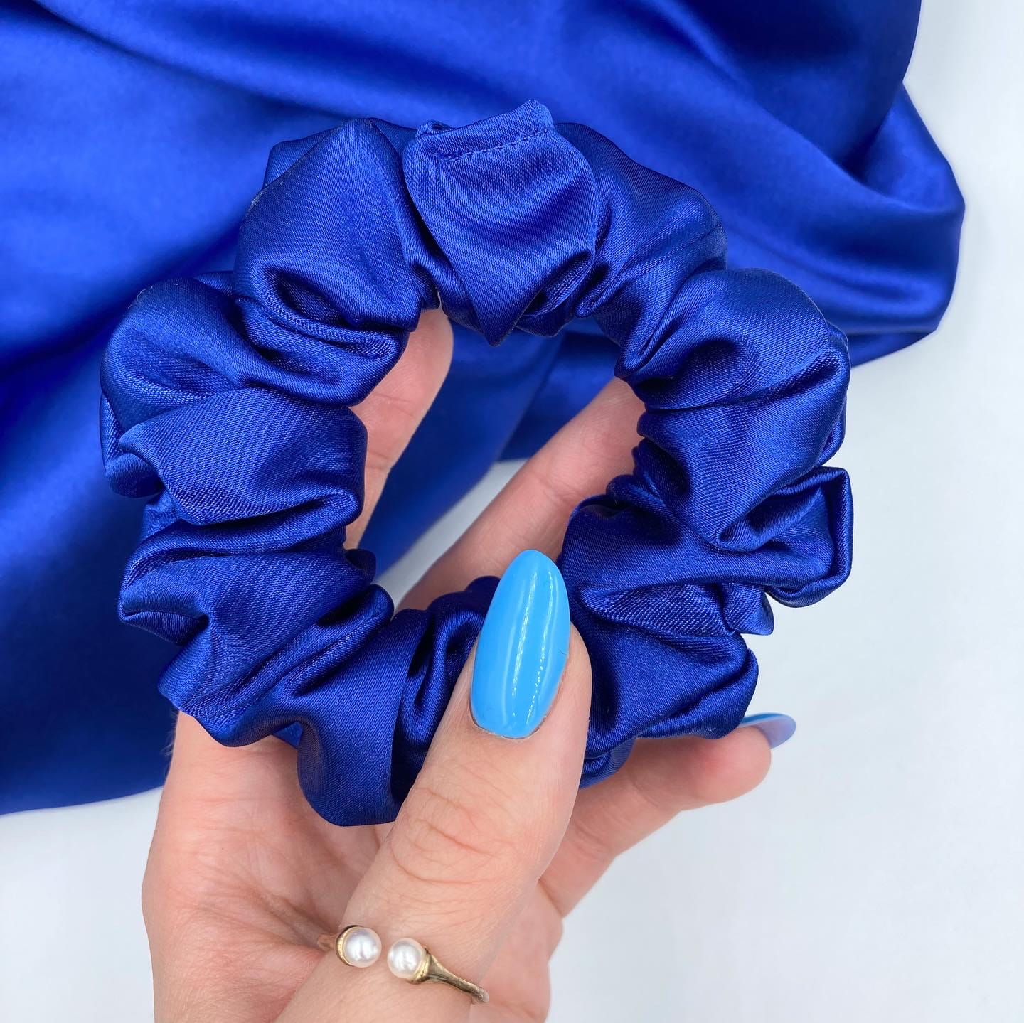 ❥ Gumki typu scrunchie w odcieniu kobaltu