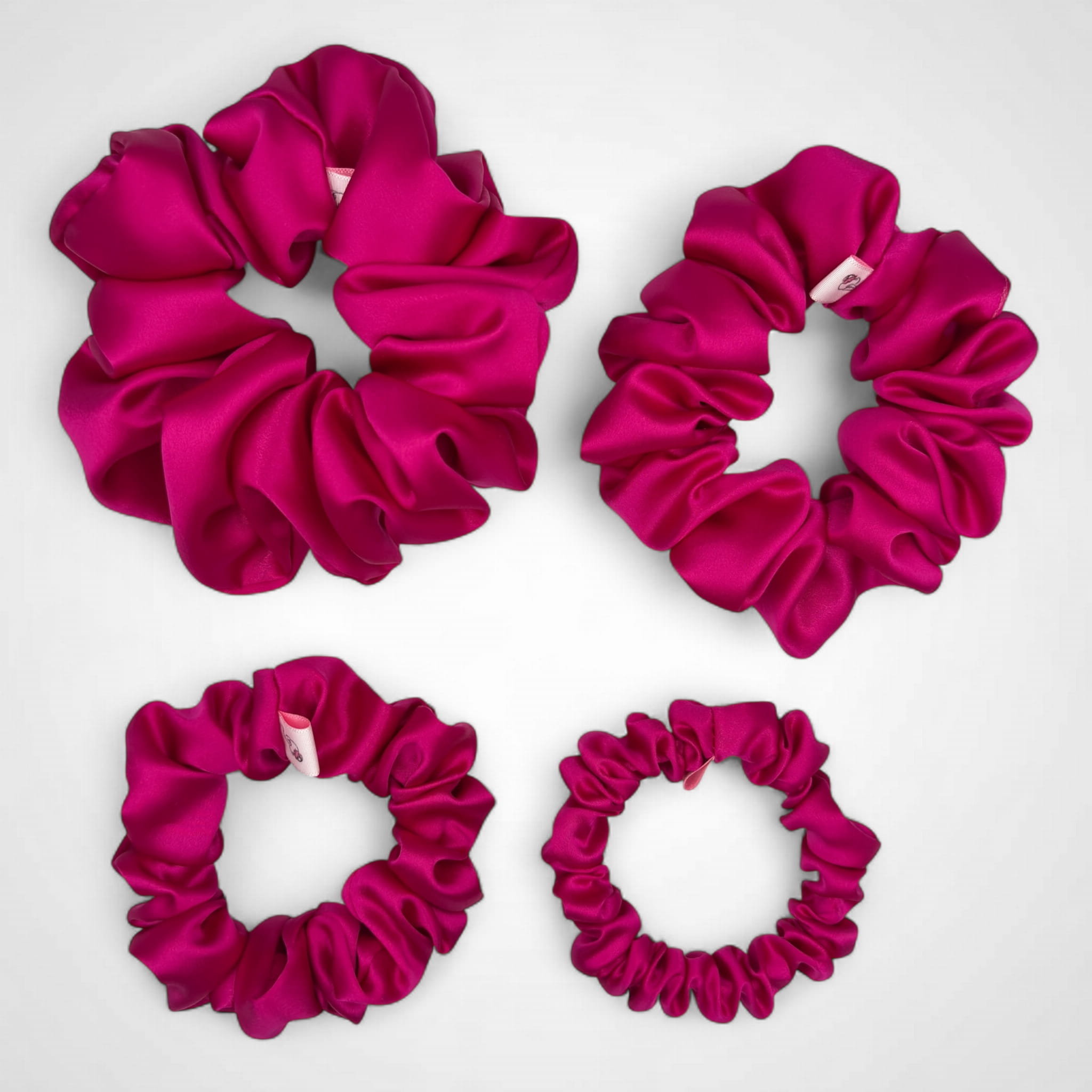 Taniej w zestawie!❥ Zestaw czterech jedwabnych gumek typu scrunchie: Maxi, Medium, Small, Mini